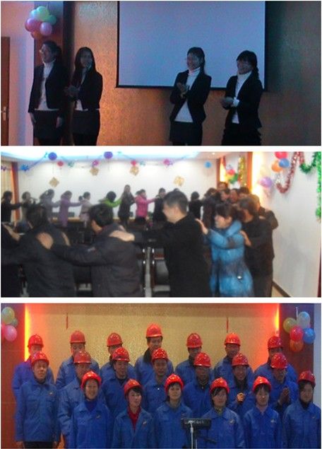 联欢会上公司不仅安排大家欣赏了励志电影《当幸福来敲门》、《暖春》,还设计了很多小游戏领导与员工一同参与,营造互动的氛围。接着公司各部门进行了2011年度总结和2012年的工作展望,共有包括人力资源部、技术研发部、生产1部、生产2部、品管部、客服部在内的多个部门依次做了发言。